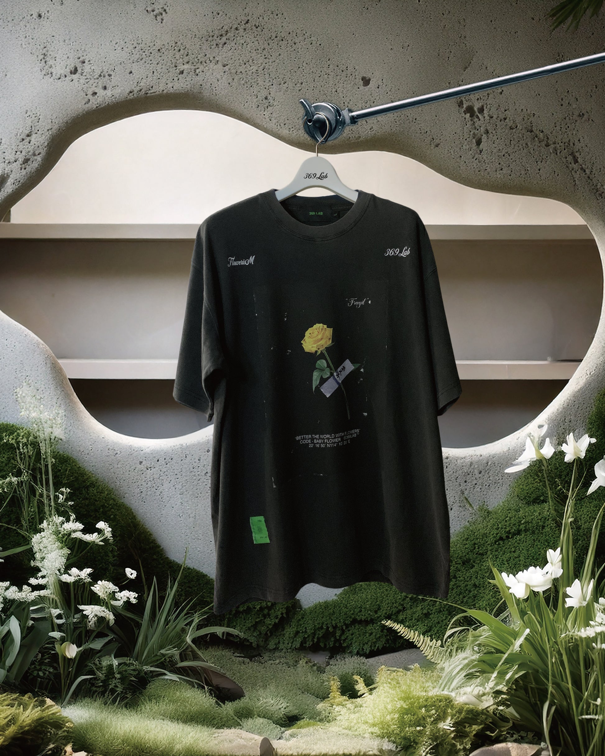 YELLOW ROSE TAPE PRINT TEE